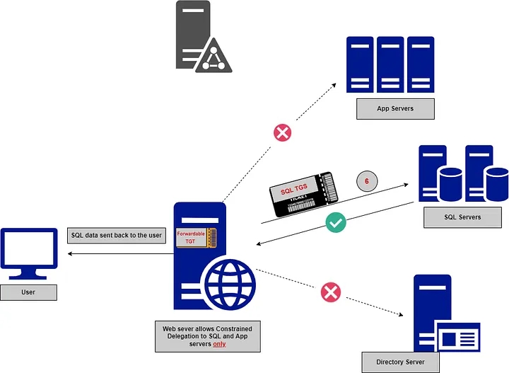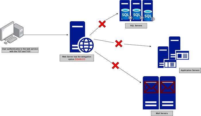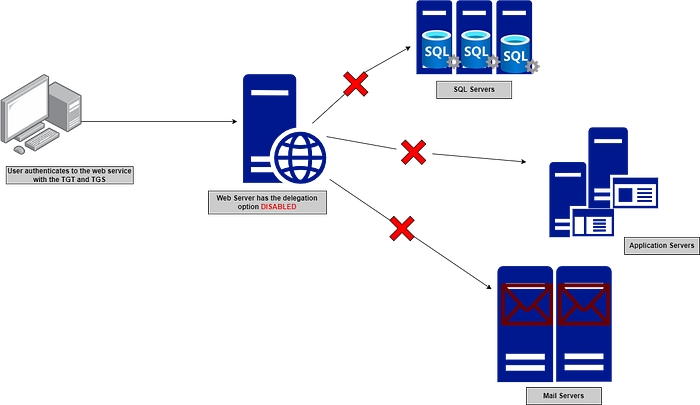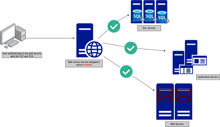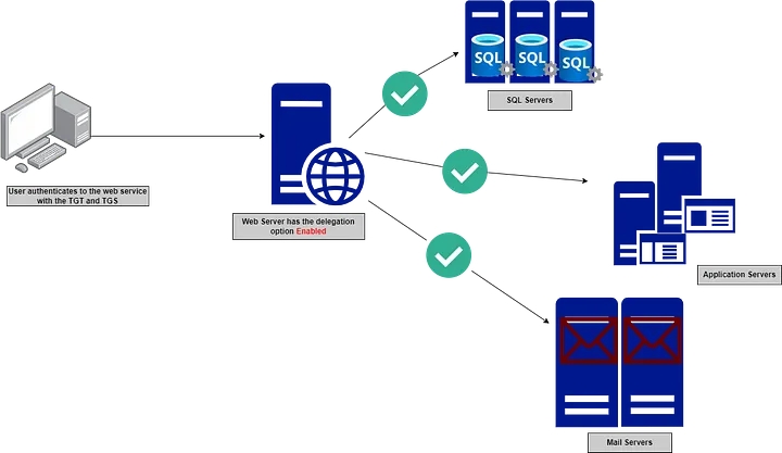 However, if the delegation is enabled, the web server can impersonate the authenticated user and forward their credentials to fetch the requested information from the database as if it was the user authenticating directly to the service.